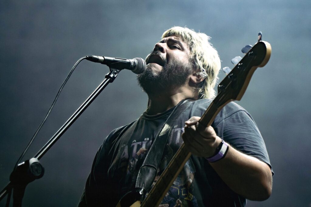 Y como fue avisada la gente, tocaron toda la trilogía en orden, comenzando por Navidad de reserva (2005), siendo el disco ideal para prepararse para las fiestas y dando nacimiento a una velada emocionante con tan solo una frase: “Es la fiesta que te prometí”. Obras ya era una caldera, y entre guitarras y la voz de Santiago Motorizado bien al frente dieron paso a “Viejo ebrio y perdido”, recordando que esta vida recién estaba por comenzar. “Brindaremos, viejo perdido / Pelearemos, viejo perdido / En las calles hoy se escucharán las canciones de la Navidad”, entonó Santiago mientras todos flameaban remeras y se entregaban a los primeros pogos de la noche.