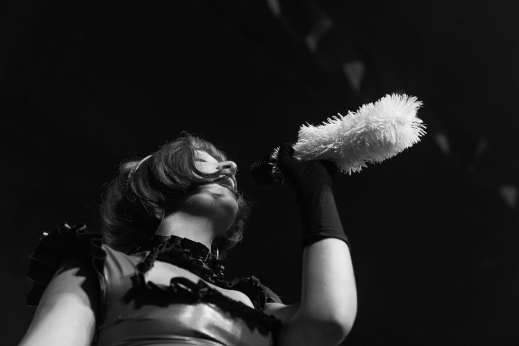 En lo estético, la banda brilla literalmente: lentejuelas para todos y varios outfits para Lola, que aprovechaba cada corte para lucir otro vestido o conjunto, acompañando cada pose en la que entonaba sus temas. Un punto alto del show surgió con “Living comedor”: una intro de bajo potente, seguida por los punteos de guitarra, desató el estallido del público, que, al reconocer el tema, se robó por un momento el protagonismo de la noche.