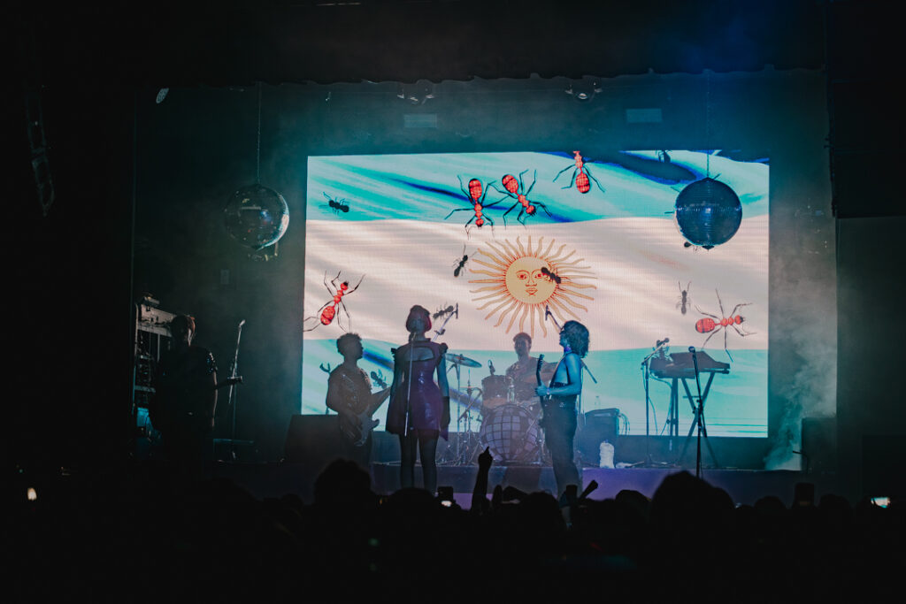 Siguiendo la línea de visuales y de ese pico del show, “Bichos” tuvo un lugar importante, con una intro rápida y popera del Himno Nacional y visuales de la bandera argentina para dar paso a una canción fuera del disco Post Pop, pero querida y pedida por el público: un coqueteo entre el pogo y un baile glamoroso.