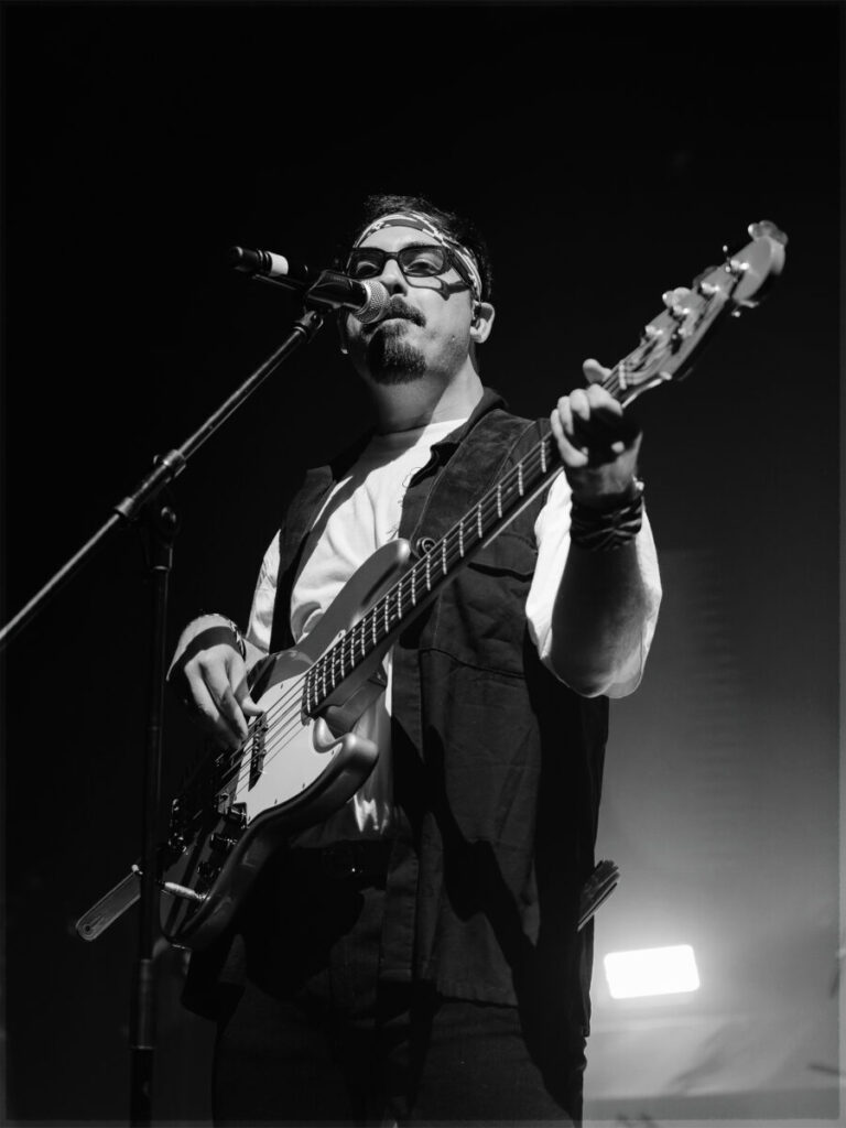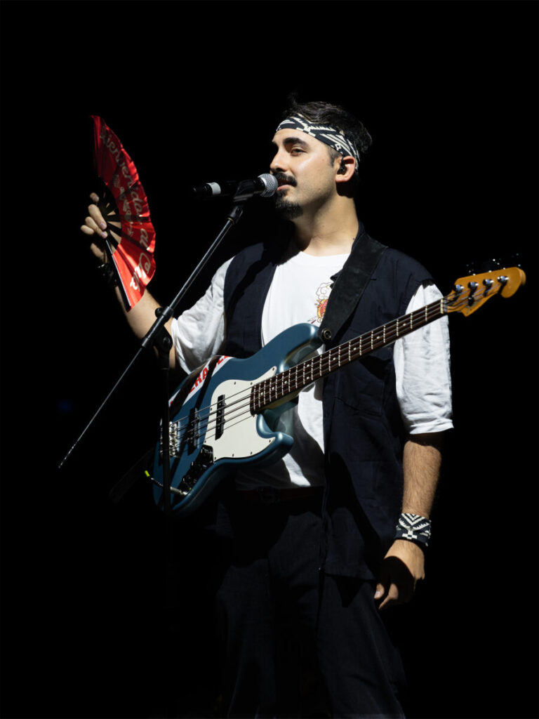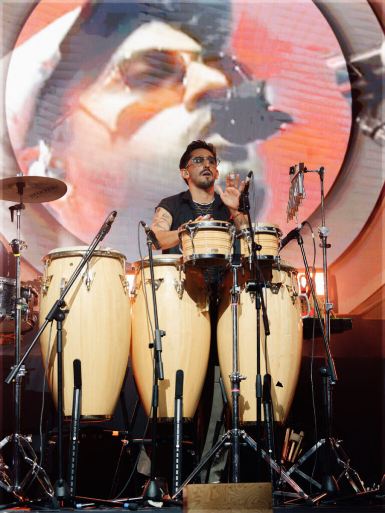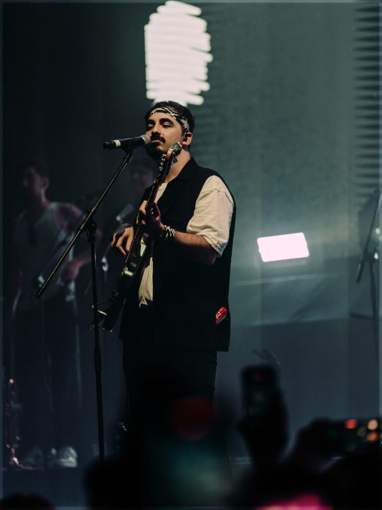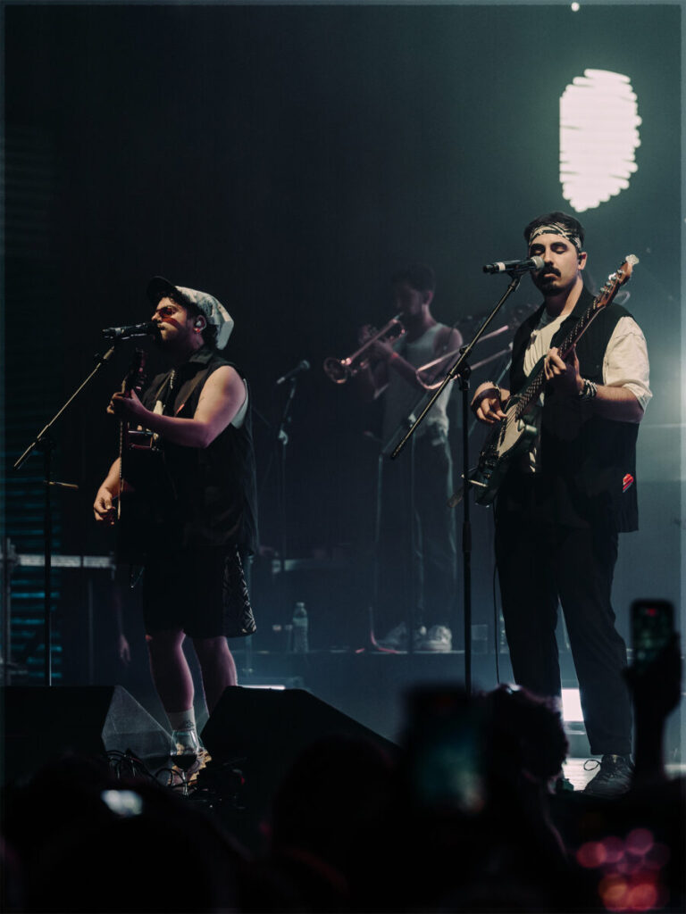 “La pálida” continuó la noche con la percusión como protagonista. Con un ritmo lento y marcado, con dejos de flamenco, el grupo hizo vibrar al complejo entero entre palmas y bailes. Luego llegó “Fantasma”, con un giro musical hacia el tango y una letra dedicada al romance, seguido por “Primer recreo”, uno de los hits de la banda, donde los instrumentos y la voz se combinaron para narrar una historia de amor.
