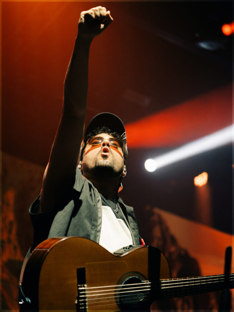 Sobre un ritmo con aires de carnaval sonó “Morena mía”, donde la voz del cantante atrapó los corazones de los presentes con su sensibilidad y dulzura. Esa misma conexión se mantuvo en “Soy débil, Sr.”, un clásico reggae, y en “En visto”, donde la banda desplegó toda su fuerza instrumental, fusionando el tema con “La chica de la playa” en una versión rockera.